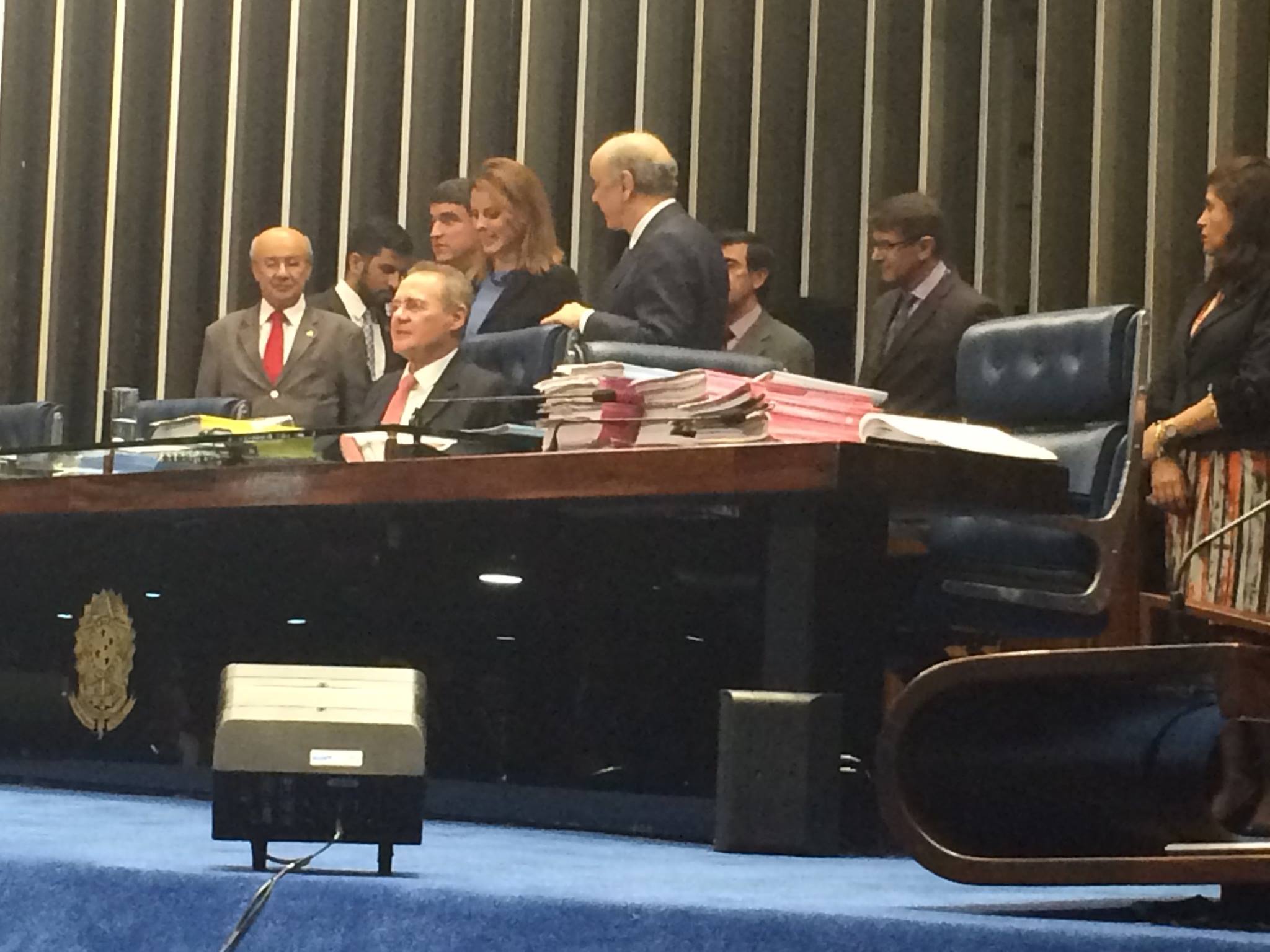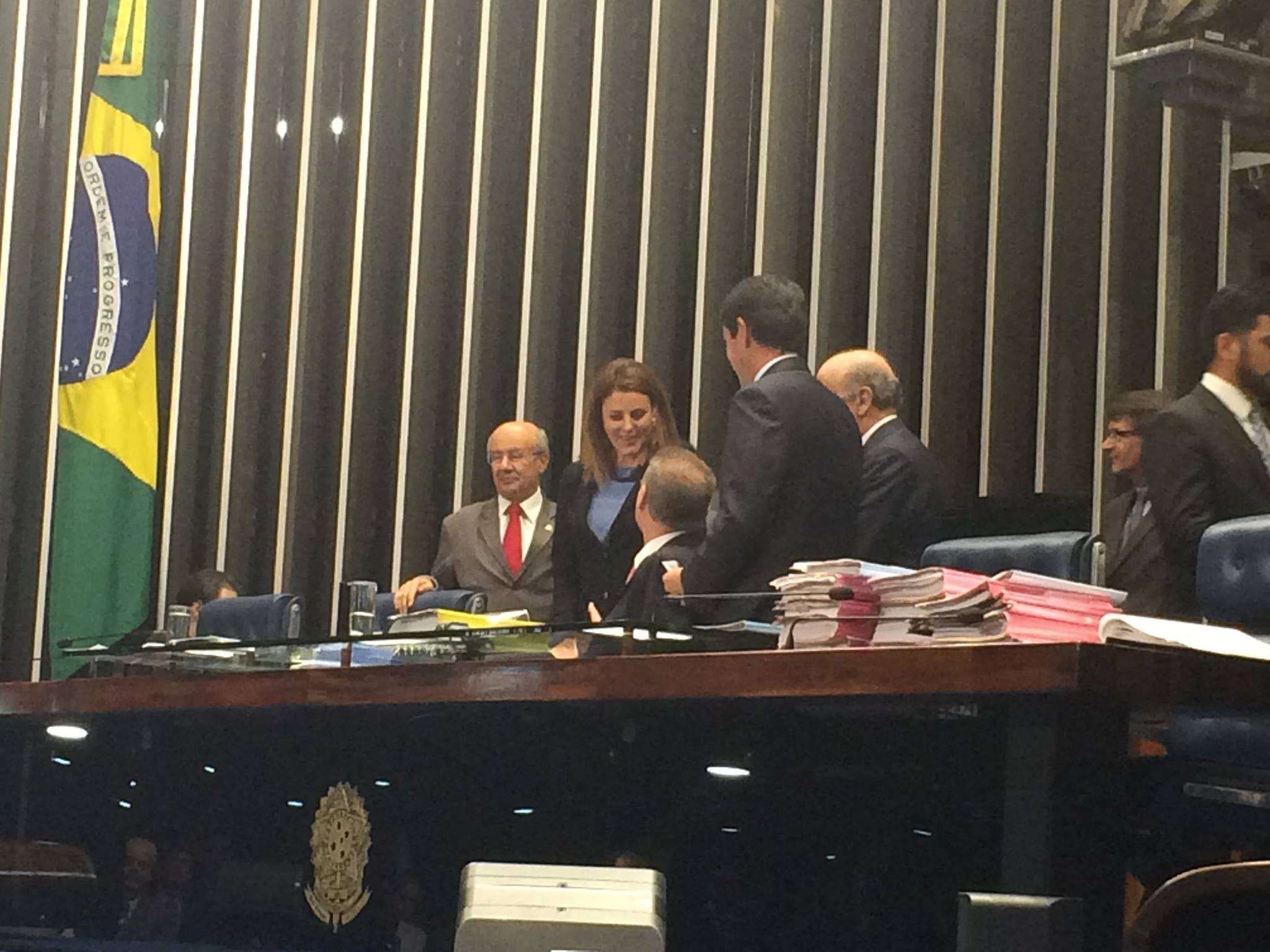 Em Brasilia, além da importantíssima reunião no Ministério do Exterior (ver publicação anterior), tive também alguns encontros com senadores e pessoas que me apoiam e com as quais tenho boas relações de trabalho. Nesta estada, visitei o senador Aloysio Nunes (PSDB-SP), que é presidente da Comissão de Relações Exteriores do Senado, e o senador Cristovam Buarque (PDT-DF), que tem um projeto que trata da criação de vagas para deputados brasileiros que representem os nossos cidadãos que residem no exterior, que é o caso dela na Itália. Também conversei com o senador José Serra (PSDB-SP) e com o presidente do Senado, Renan Calheiros (PMDB-AL). Fiquei feliz com a calorosa recepção que tive no Plenário, onde foi anunciada minha presença e elogiada por pronunciamento do senador Aécio Neves.
