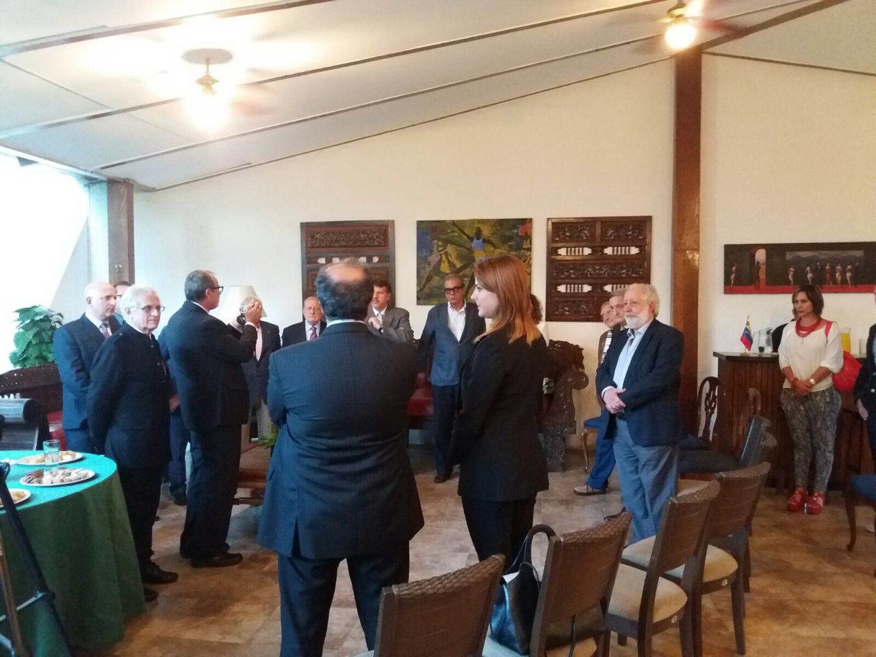 Ainda no dia 05.01 a Deputada se reuniu, na residência do Embaixador, com diversos representantes da coletividade italiana. Estavam presentes: o Embaixador da Itália na Venezuela, o Cônsul, o presidente da Câmara de Comércio, represnetante do CGIE, Agora Magazine e vários outros membros da comunidade italiana na Venezuela. Na ocasião, a Deputada teve acesso a informações importantes sobre a realidade que estão vivendo os ítalo-venezuelanos e ficou de dar uma atenção especial a isso ao retornar para Roma.