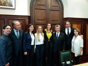 Da esquerda para a direita: Deputado Freddy Guevara (1º Vice presidente da Assembléia Nacional), Marco Adame (Secretário de Assuntos Internacionais do PAN – México), Patrícia de Ceballos (Prefeita de San Cristóbal, Estado Táchira e esposa do preso político Daniel Ceballos), Lilian Tintori (esposa de Leopoldo López), Dep. Renata Bueno, Dep. Henry Ramos Allup (Ex Presidente da Assembléia NAcional de Venezuela), Dep. Luis Florido (Presidente da Comissão de Política Exterior), Mitzi Capriles de Ledezma (esposa de Antonio Ledezma, preso político).