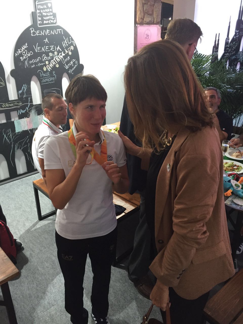 “Assistir às competições de natação de ontem foi uma grande experiência. Ver de perto a capacidade desses atletas em superar os seus próprios limites é impressionante. Mas, ainda mais emocionante foi poder conhecer alguns destes atletas medalhistas”, comentou a deputada que ontem foi para o Rio de Janeiro para os Jogos e para acompanhar o Subsecretário da Presidência do Conselho italiano, Luca Lotti, em sua missão. Em um evento realizado a noite na Casa Itália, a casa que hospeda os atletas italianos durante a competição, “tive a oportunidade de falar com eles, sentir força e energia deles” contou a deputada. Ainda, estavam presentes o subsecretário e, naturalmente, o Cônsul da Itália. whatsapp-image-2016-09-11-at-13-56-40 whatsapp-image-2016-09-11-at-13-56-44 whatsapp-image-2016-09-11-at-13-56-38 whatsapp-image-2016-09-11-at-13-56-37 whatsapp-image-2016-09-11-at-01-46-16 whatsapp-image-2016-09-11-at-01-46-12 whatsapp-image-2016-09-11-at-01-46-07