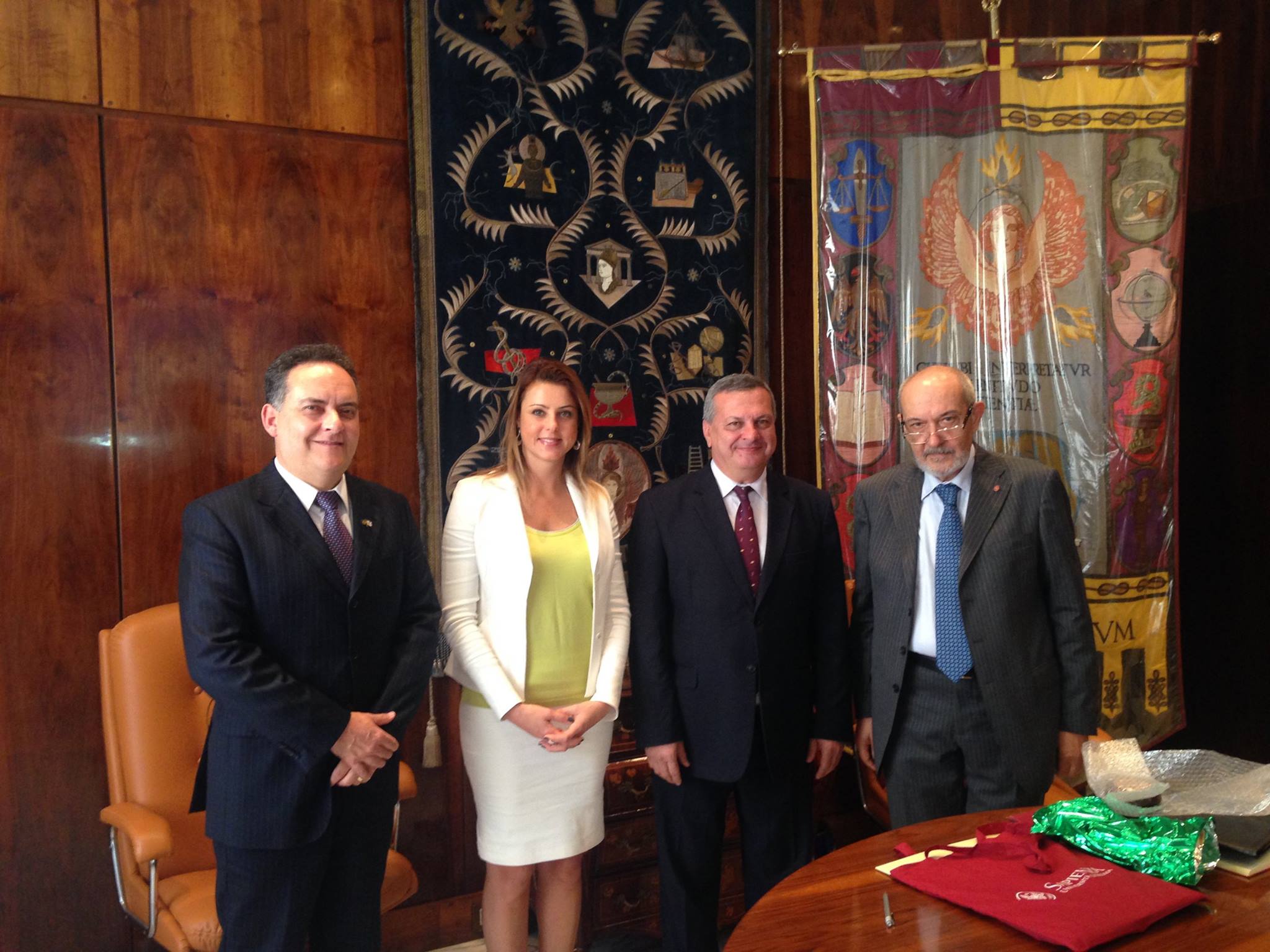 Da sinistra: Dott. Mauricio Alves Mendes, Prorettore UTFPR, io, Prof. Eduardo Cantarelli, Rettore della UTFPR , Antonello Biagini, Prorettore Vicario e Prorettore per la Cooperazione Rapporti Internazionali Univ. La Sapienza.