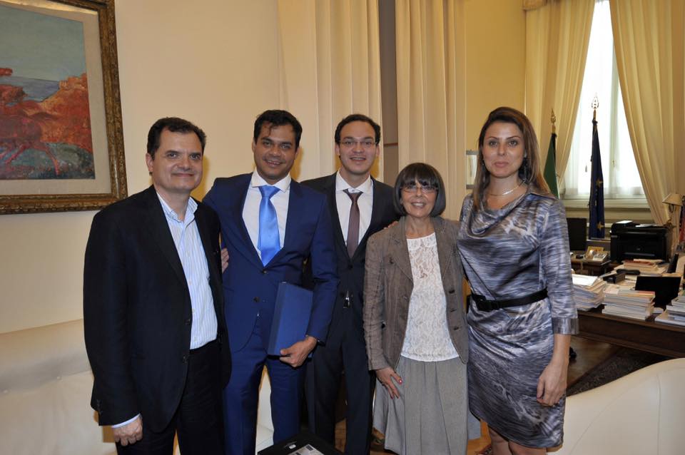 Nos dias 16 e 17/06/2015, a Deputada Renata Bueno recebeu no Palácio Montecitório, a visita dos parlamentares brasileiros Uldorico Junior e Expedito Netto. Na ocasião tiveram a oportunidade de encontrar-se também o o Deputado Fábio Porta, e os Deputados Lattuca e Capodicasa. Além destes parlamentares, o encontro institucional possibilitou o debate de importantes temas com a Vice Presidente da Câmara dos Deputados, Dep. Marina Sereni e também com o Presidente da União Interparlamentar, Dep. Antonio Martino. Fecharam a visita ao Parlamento Italiano com um breve encontro com o Primeiro Ministro, Matteo Renzi. Nella Sala della Regina, dove è esposta la Costituzione Italiana.Nella foto a sinistra il Collega Porta, il Deputato brasiliano Uldurico Junior, Renata Bueno accanto al Collega Lattuca, il Collega Capodicasa e il Deputato Expedito Netto.In questa foto, al centro, con il Presidente dell’Unione Interparlamentare, On. Antonio Martino.In questa foto, da sinistra il Collega Fabio Porta, il Deputato Netto, il Deputato Uldurico Junior, la Vice Presidente della Camera dei Deputati, On. Marina Sereni, i On. Renata Bueno.Incontro in buvette con il Presidente Renzi che ha salutato i Deputati Netto e Uldurico Junior.