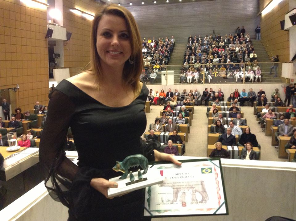 Na noite de hoje, a deputada ítalo-brasileira Renata Bueno foi homenageada no Plenário do Palácio 9 de julho, na Sessão Solene organizada, em comemoração do Dia da Comunidade Italiana, por solicitação dos deputados Alex Manente e Vitor Sapienza. Recebeu em mãos o Diploma e o troféu “Loba Romana” pelos relevantes serviços prestados à Comunidade Ítalo-Brasileira.